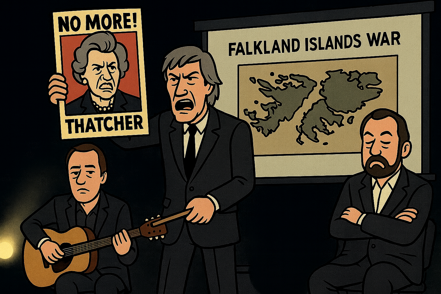 Almost all of the songs on The Final Cut deal with these themes. On “Get Your Filthy Hands Off My Desert,” Waters compares Thatcher to other contemporary warmongers, singing: “Brezhnev took Afghanistan. Begin took Beirut. [Argentine President Leopoldo] Galtieri took the Union Jack. And Maggie, over lunch one day. Took a cruiser with all hands. Apparently, to make him give it back.” For “The Fletcher Memorial Home” — “Fletcher” was Waters’ father’s middle name — Waters takes it a step further and tells “Maggie” and other world leaders like Ronald Reagan, First Minister of Northern Ireland Ian Paisley, Brezhnev, Begin and others to retire to the “Fletcher Memorial Home for Incurable Tyrants and Kings.” There they can hang out with the ghosts of Joe McCarthy and Richard Nixon, and in the controversial music video, Napoleon and Hitler.